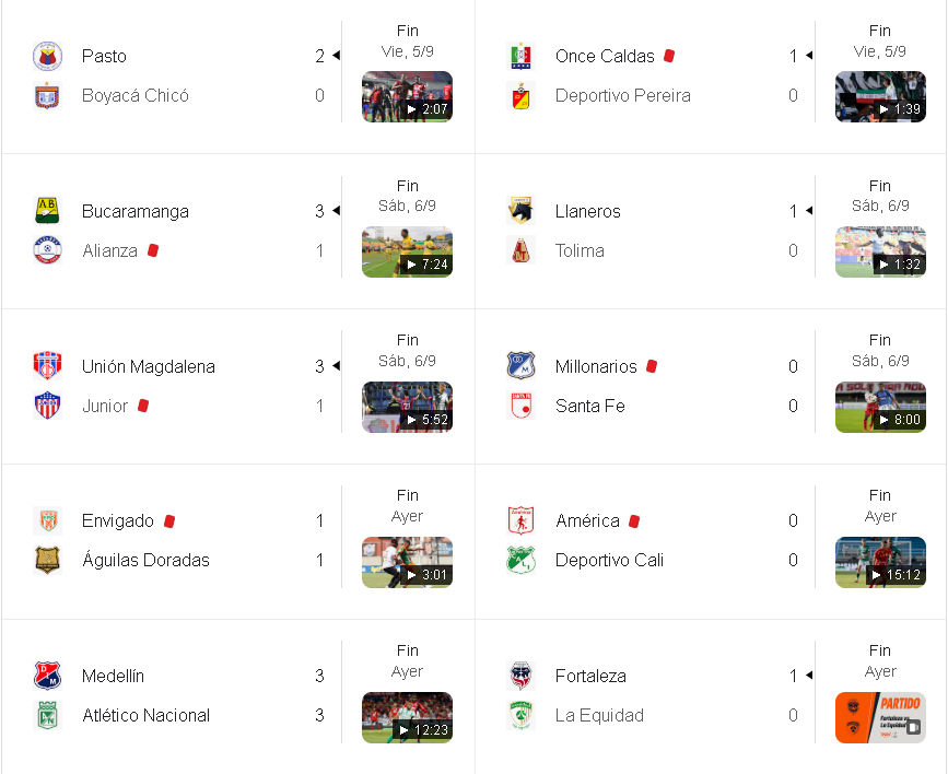• Millonarios 0 – 0 Santa Fe: El clásico capitalino terminó sin goles, aunque con mucha lucha en el campo.